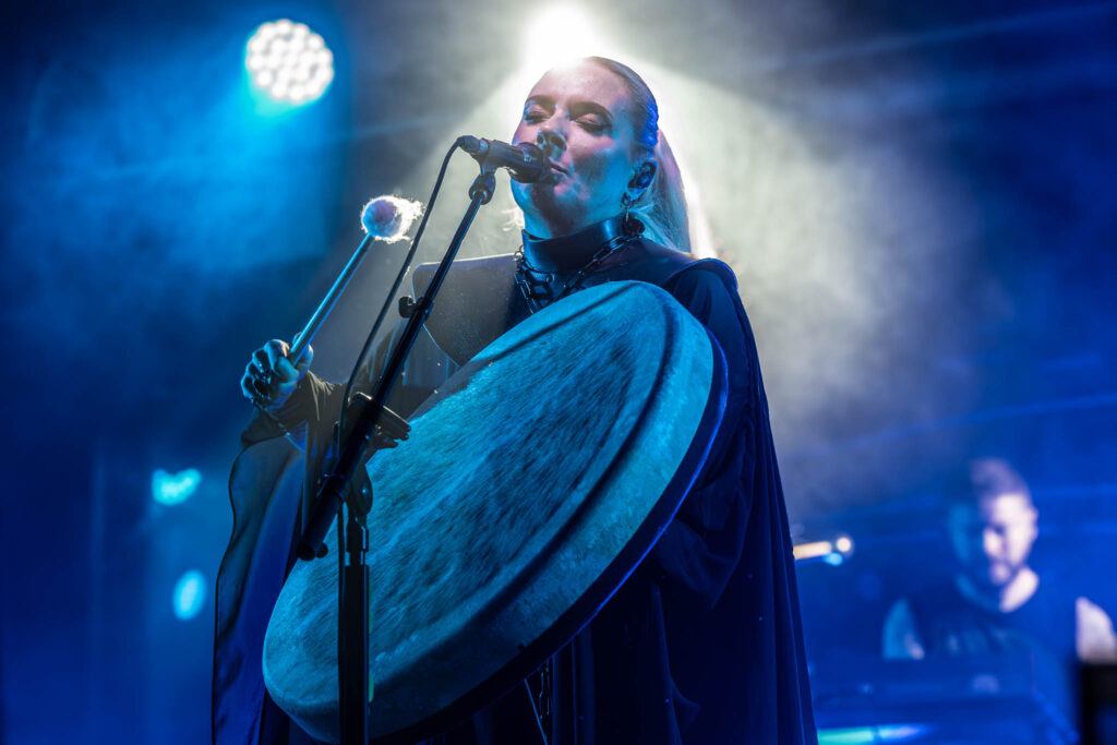 El mayor arma de Eivor en directo es su potente voz, capaz de hacer viajar al público a parajes gélidos de otra época donde también aportan su toque diferencial la electrónica, algún que otro guitarreo esporádico, el contrabajo o su inseparable tambor sami que siempre llega acompañado de una ovación.